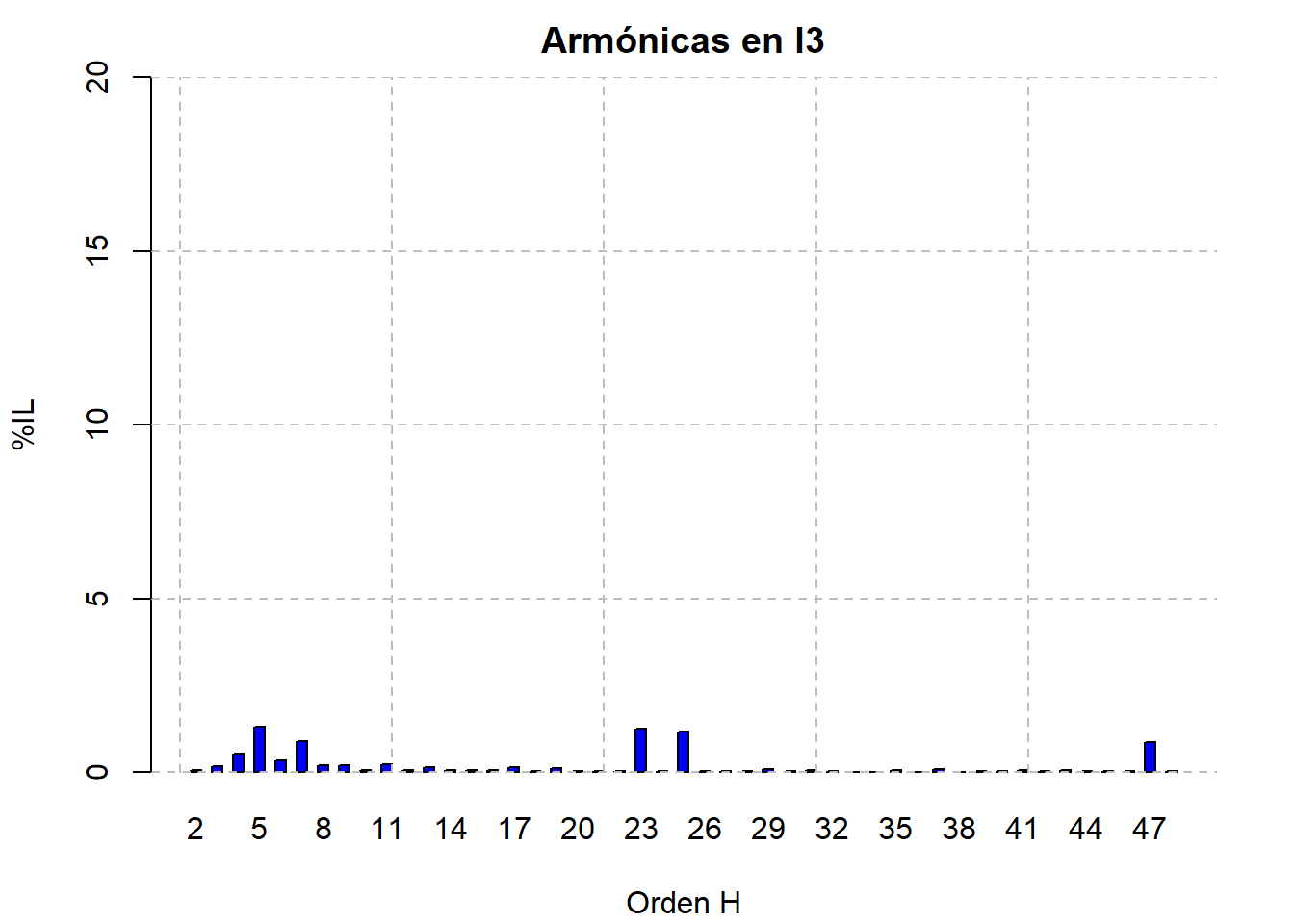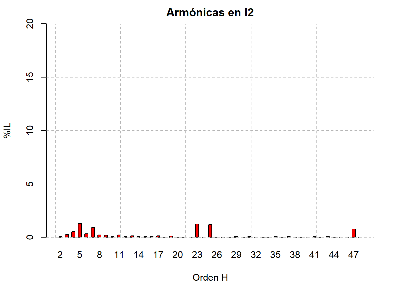 Se recomienda llevar a cabo un estudio de resonancia que permita identificar las causas de los niveles elevados en las armónicas 23ª, 25ª y 47ª, y definir medidas correctivas.